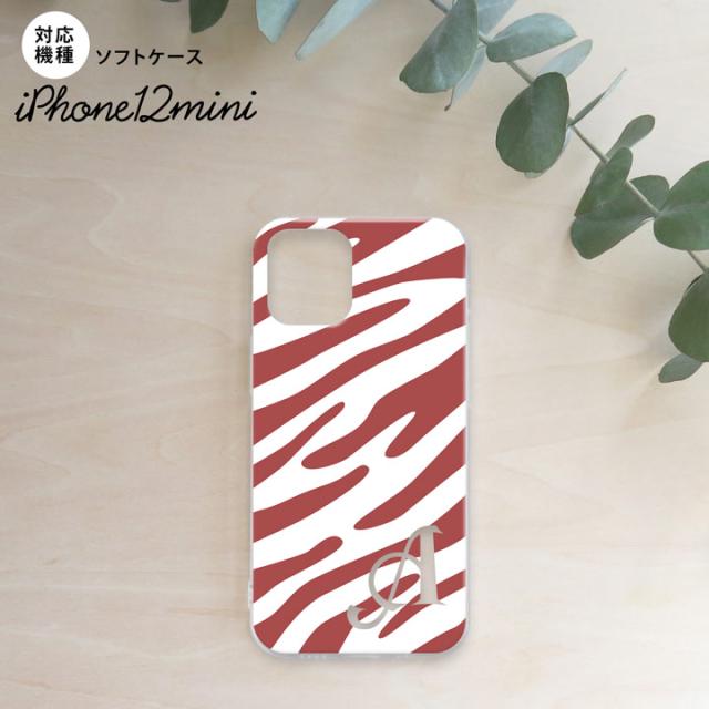 iPhone12mini iPhone12 mini 5.4 スマホケース ソフトケース ゼブラ 赤茶 白 +アルファベット