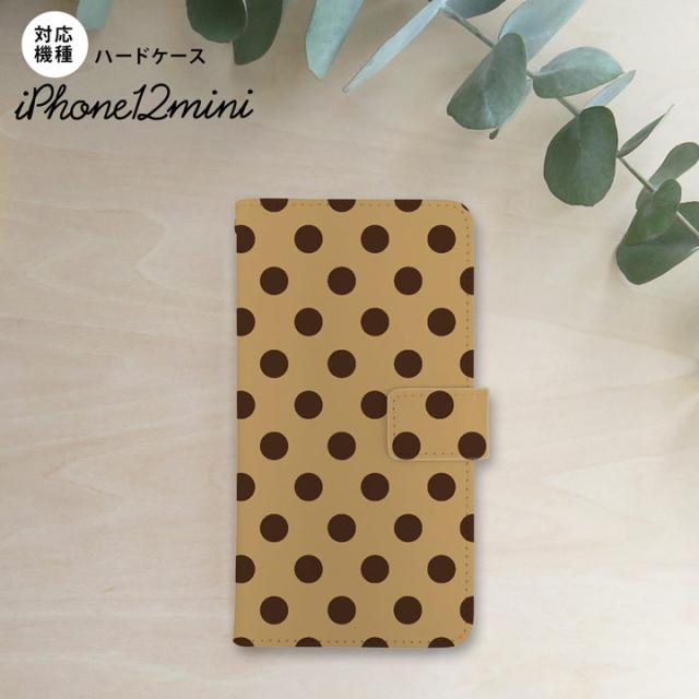 iPhone12mini iPhone12 mini 5.4 手帳型スマホケース カバー ドット 水玉 茶 黒茶