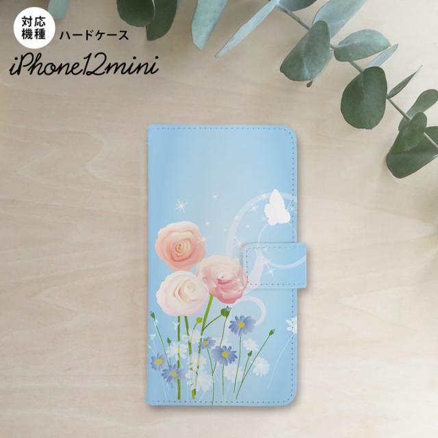 iPhone12mini iPhone12 mini 5.4 手帳型スマホケース カバー 花柄 ミックス 青 nk-004s-i12m-dr281