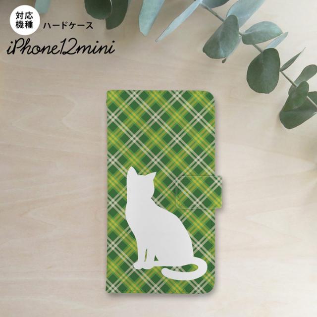 iPhone12mini iPhone12 mini 5.4 手帳型スマホケース カバー 猫 バイアスチェック 緑 nk-004s-i12m-dr957
