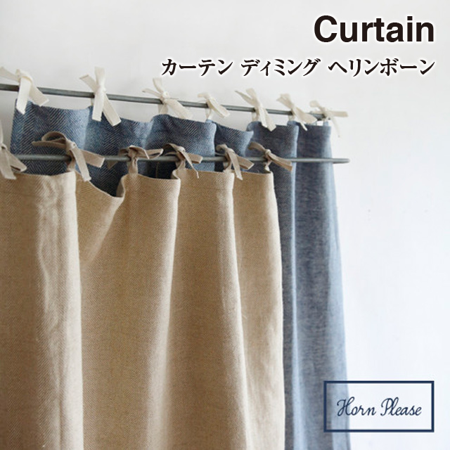 【Horn Please】カーテンディミングヘリンボーン 308850BL【キャンブリックコットン ファブリック お洒落 インド】