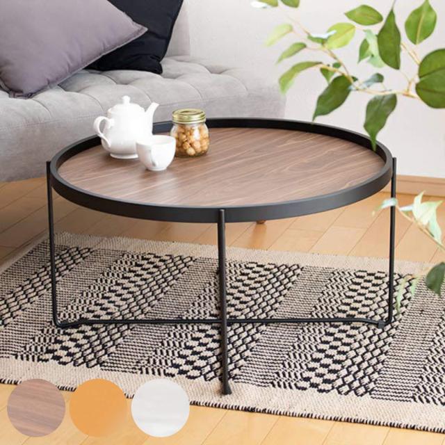センターテーブル 幅73cm トレー テーブル 折りたたみ 収納 お盆 丸 ( Lサイズ ローテーブル リビングテーブル リビング おしゃれ ミニテーブル 丸テーブル )