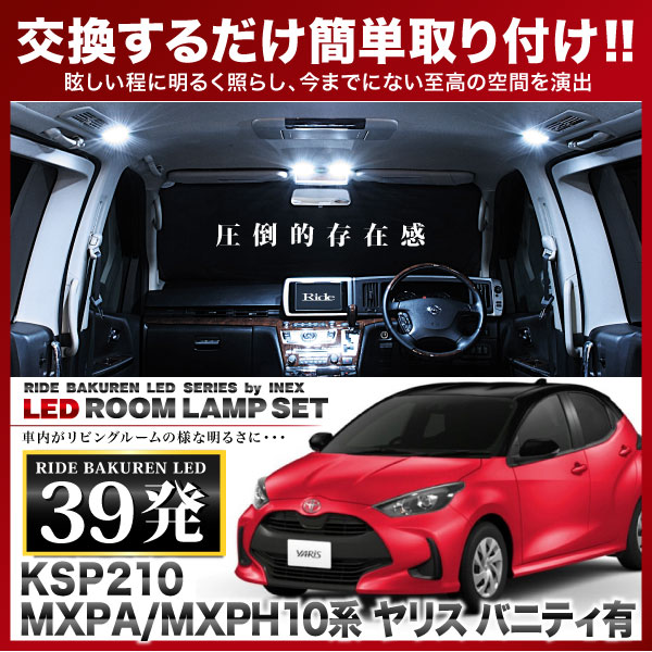 ヤリス バニティ付 RIDE LEDルームランプ 39発 4点 KSP210/MXPA10/MXPA15/MXPH10/MXPH15 [R2.2-]
