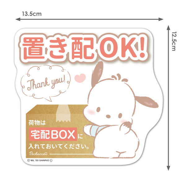 大好きなポチャッコを玄関や宅配ボックスにペタッ!サンリオキャラクター「ポチャッコ」の置き配ステッカーが登場! ■サイズ:W約135mm×H125mm(ダイカット) ※マグネットタイプのため、あらかじめご利用いただく場所にマグネットがつくかご確認ください。 |