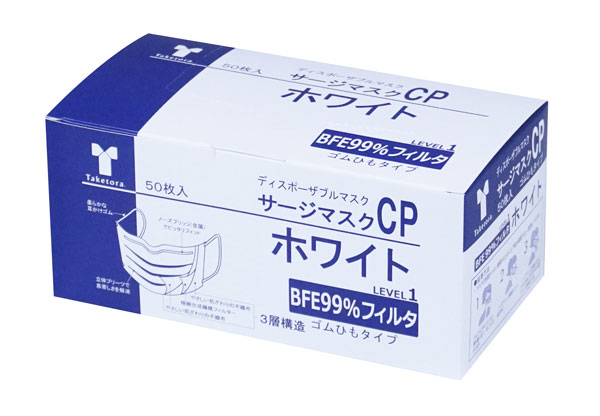 サージマスクCP 金属ノーズ ホワイト 076231 医療用 サージカルマスク 1箱50枚入 竹虎【返品不可】
