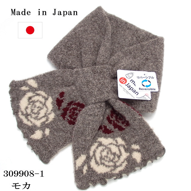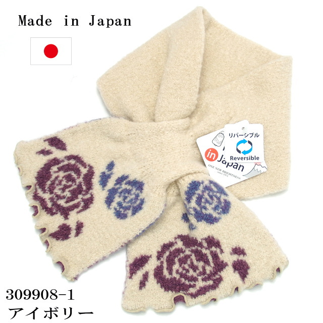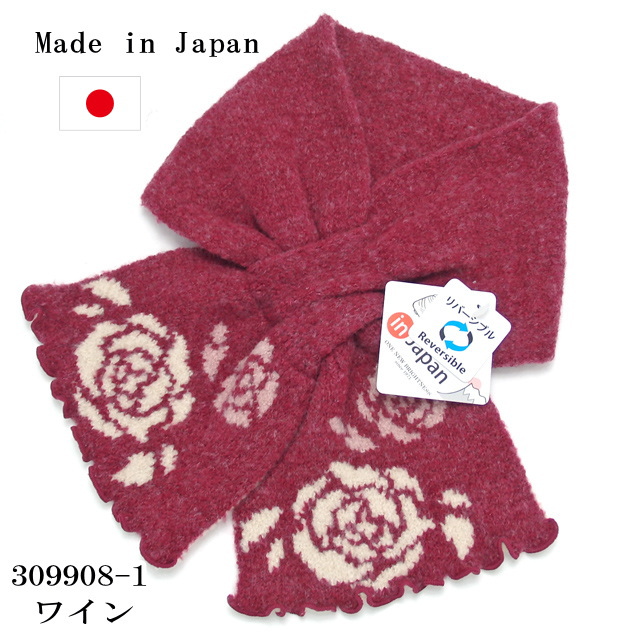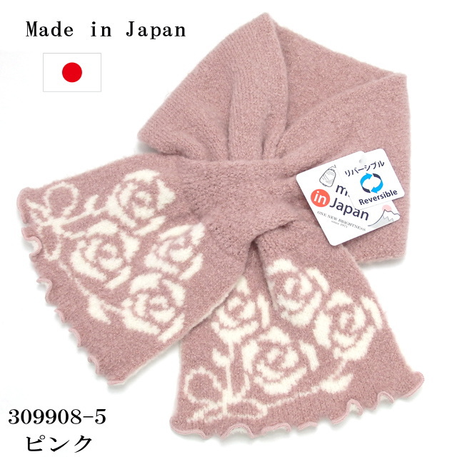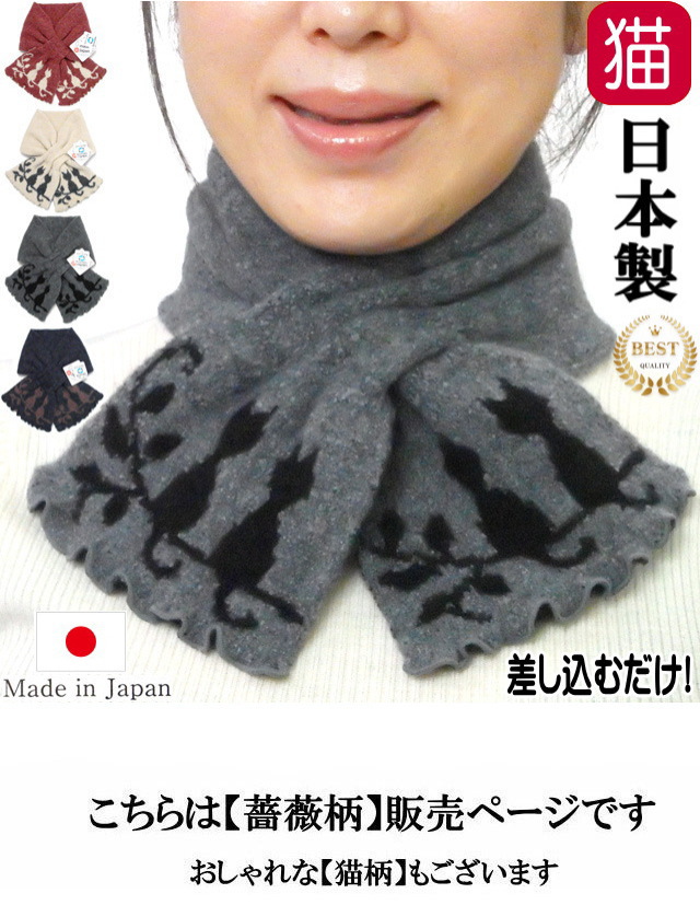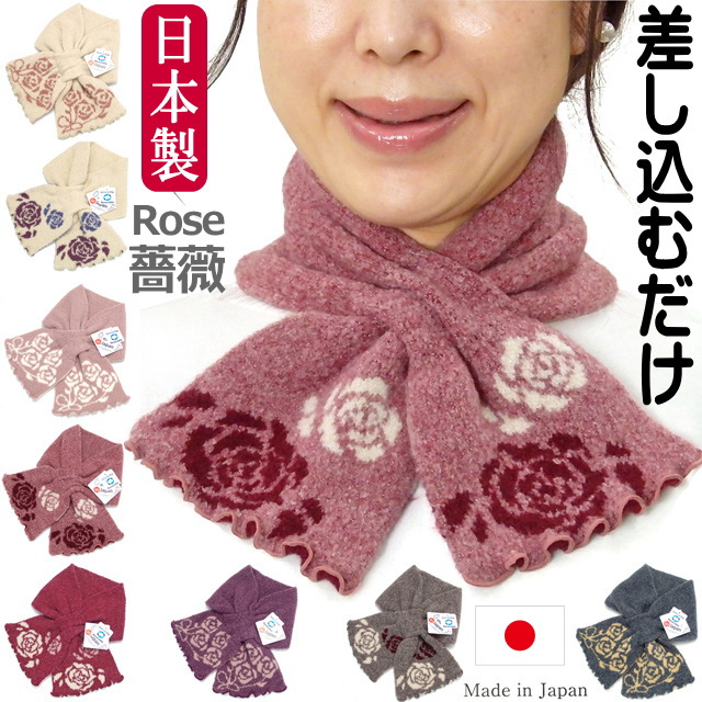 マフラー 差し込み 薔薇柄 日本製 ローズ 襟巻き スカーフ 薔薇雑貨 おしゃれ かわいい レディース プチマフラー