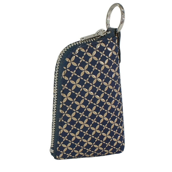 印伝 甲州印伝 印傳屋 上原勇七 キーケース キーホルダー 4707 七宝繋ぎ 紺地×白漆 鹿革 本革 レザー 和柄 ブランド 冬物 冬ギフト クリスマス 贈り物 YM02