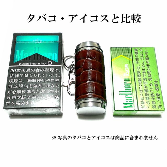 携帯灰皿 クロコ型押し ブラウン おしゃれ 革巻き 本牛革巻き タバコ アイコス アッシュ・シリンダー メンズ プレゼント ギフト 屋外