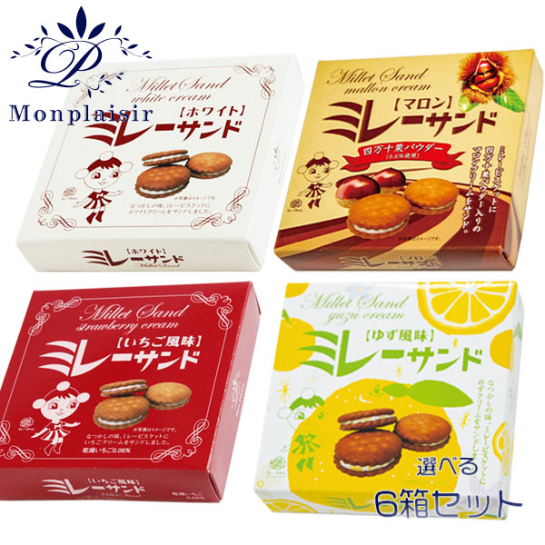 ミレーサンド (小箱) 6箱 モンプレジール 高知 ご当地 お土産 ミレービスケット まじめなおかし チョコ ホワイト マロン ストロベリー