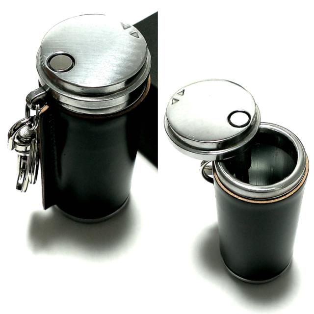 皮革のしっとりとした質感が心地いい携帯灰皿です。