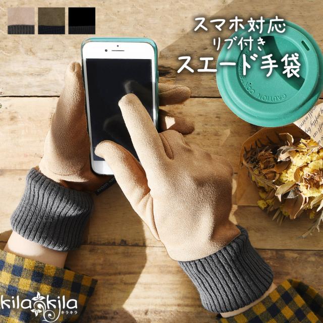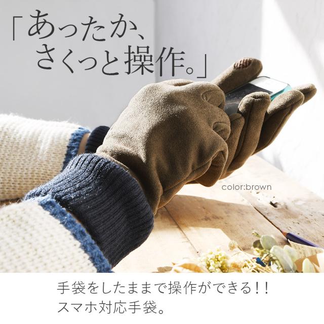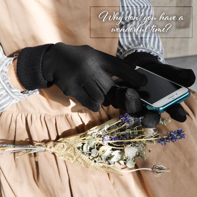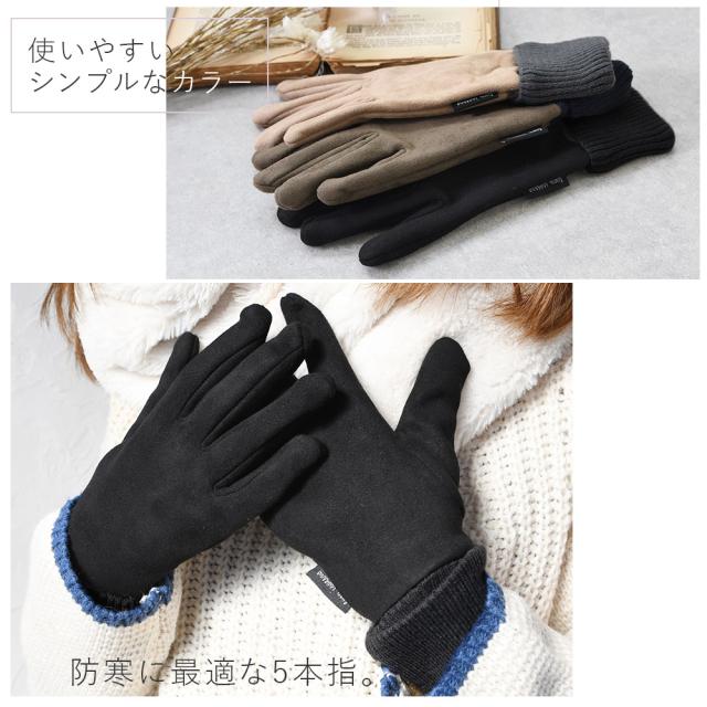 【メール便可】 手袋 レディース スマホ スマホ対応 暖かい 保温 シンプル 防寒 あったか スエード リブ 指先あったか おしゃれ かわいい 自転車 防寒 春新作