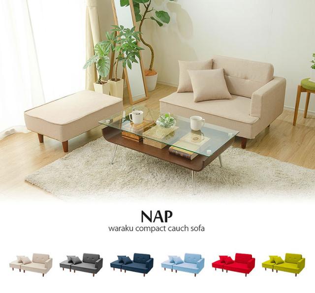 【クッション2個付き】国産 コンパクト カウチソファ NAP(ナップ) 6色対応 カウチソファー 2人掛けソファ 2Pソファ 二人掛けソファ 2人掛け 2人掛けソファー スツール オットマン ポケットコイル 一人暮らし L字型 北欧