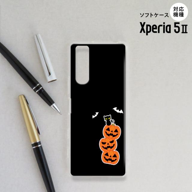 Xperia5 II 5G ケース ソフトケース スマホケース ストラップホール有 ハロウィン カボチャ 連 小 黒