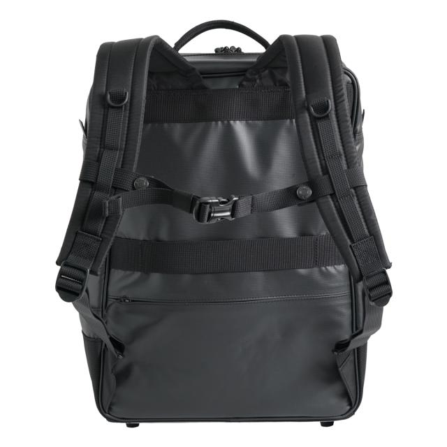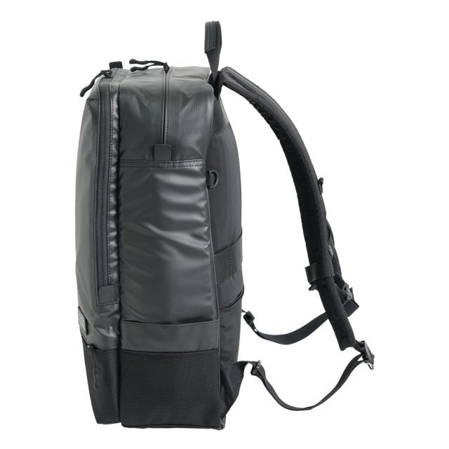 B4対応の軽量ビジネスリュック。前面と背面に折り畳み傘や小物を収納できるファスナーポケット。