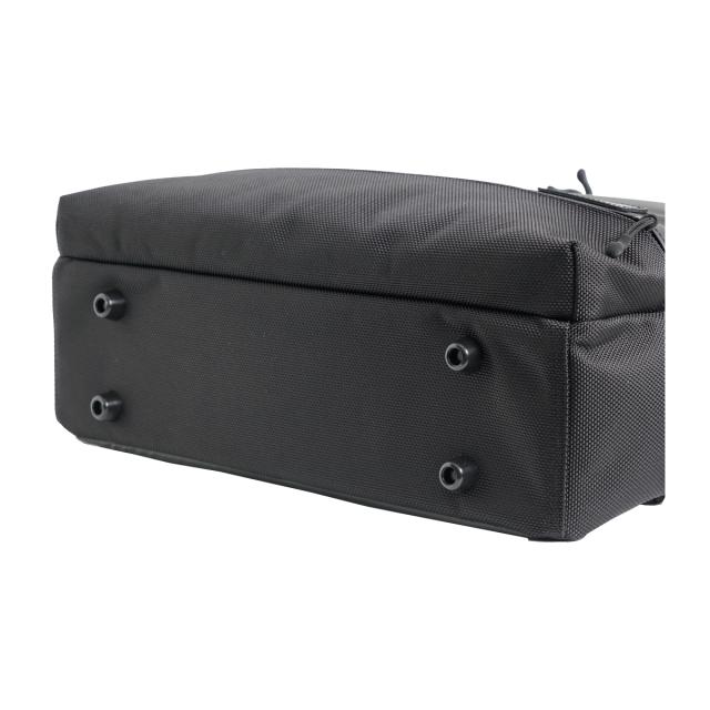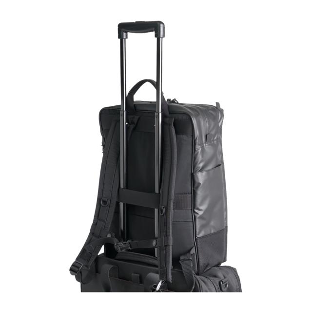パッド入り背面ショルダーにはモバイルポーチなどを取り付けられるDリング付き。