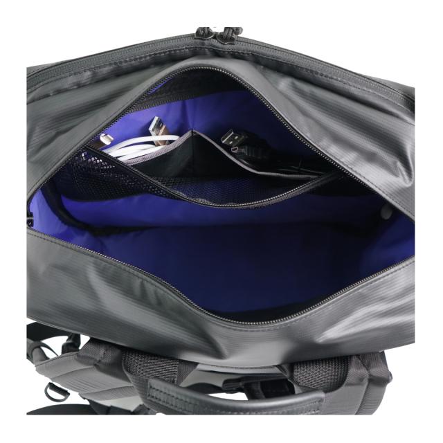 軽量樹脂フレーム内蔵により形を綺麗に保てます。カバンの中を見やすくし、収納物を探しやすい青色の裏地を採用。