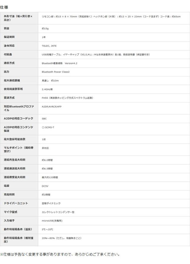付属品:USB充電ケーブル、イヤーキャップ(XS,S,M,L:Mは本体装着済み)各1組、取扱説明書(保証書付き)