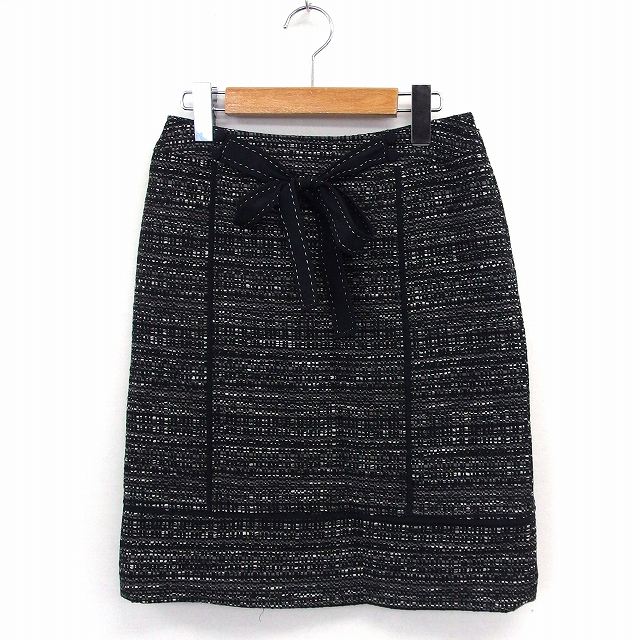 【中古】PREMIERE スカート タイト 膝丈 ツイード リボン サイドジップ 36 ブラック /ST51 レディース