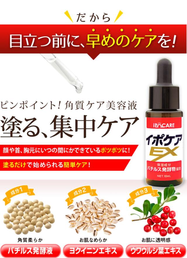【首イボ取り】ポツポツ除去 自宅でセルフケア 本日ポイント増量お得♪正規品 無添加 デコルテ 角質粒 除去 イボケア EX 18ml