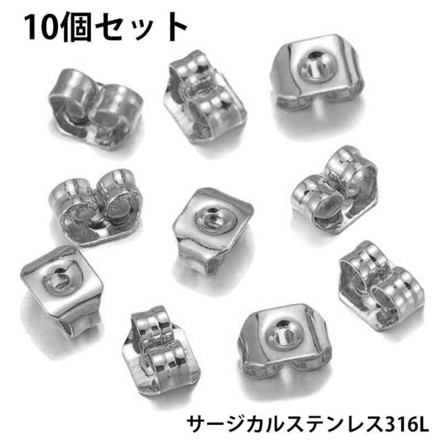 サージカルステンレスキャッチ(留具)/10個セット サージカルステンレス316L ステンレスピアス用 パーツ DIY用 落ちない 落ちにくい スタッドピアス用 キャッチピアス用 ポスト ハンドメイド ピアスのキャッチ クラフト 部品 留め金 止具 止め具 シンプル 定番 金具