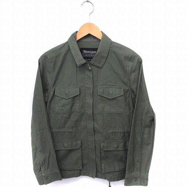 【中古】Monique ジャケット アウター ミリタリー 長袖 無地 コットン 綿 38 カーキ /FT27 レディース