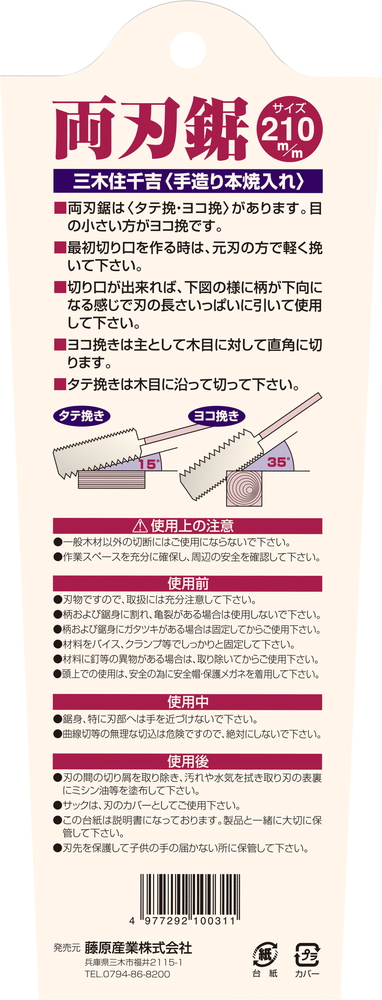 三木住千吉 両刃鋸 210mmに関する詳細なお問合せは下記までお願いします