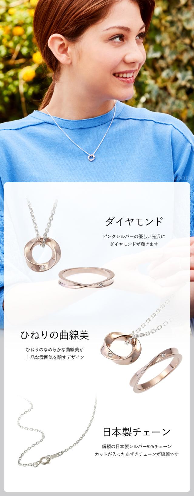 リング レディース ピンクシルバー セット 刻印 ダイヤモンド シンプル ひねり メビウス 細身 上品 おしゃれ 指輪 偶数サイズ 母の日 ギフト (jlr044psv_jln110psv_set)