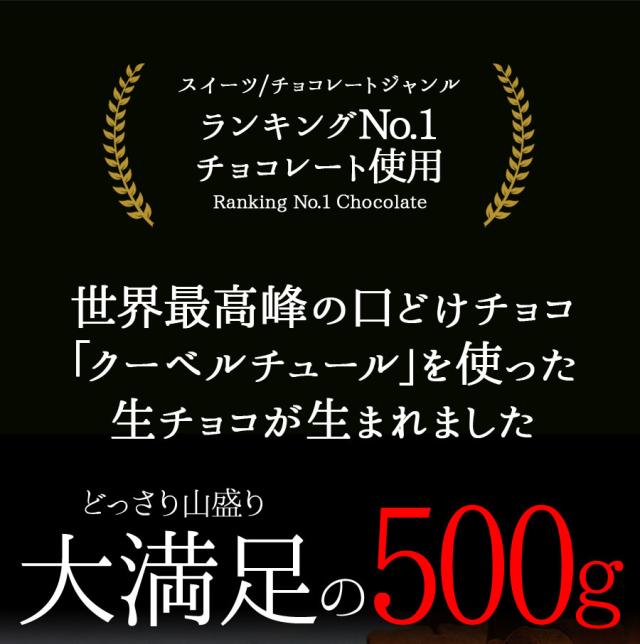 最高級クーベルチュールチョコを使ったとろける生チョコが大容量500gで登場しました。