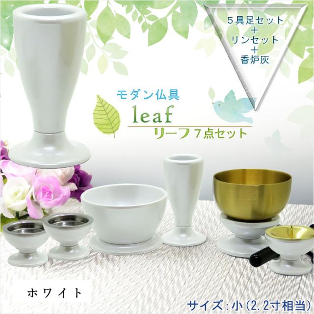 仏具【お買い得仏具セット・モダン仏具:Leaf(リーフ)艶ありホワイト・サイズ小】仏壇用仏具 送料無料