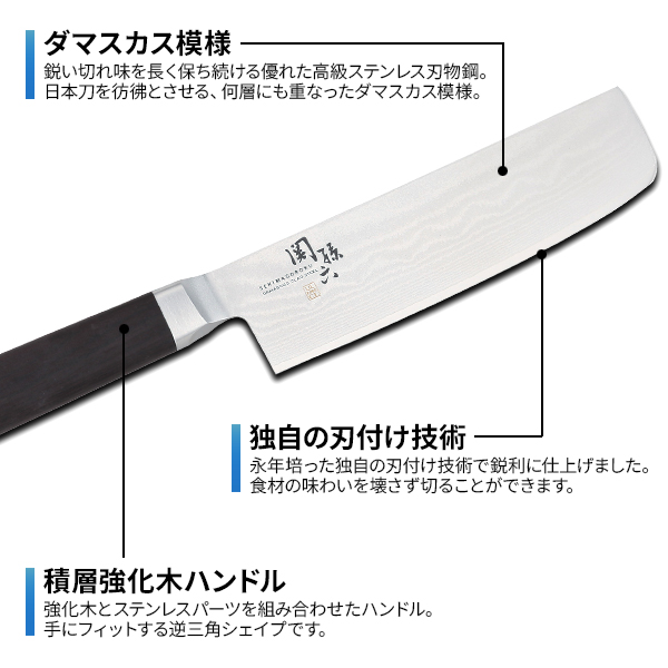 貝印 包丁 関孫六 ダマスカス 菜切り包丁 刃渡り16.5cm AE5206 | 高級 日本製 菜きり 菜切包丁 ステンレス