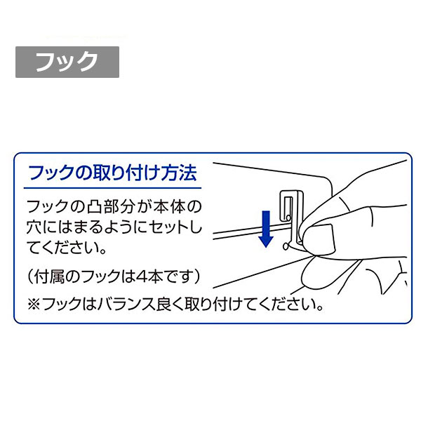 フックは凸部分が本体の穴にはまるようにセットしてください。