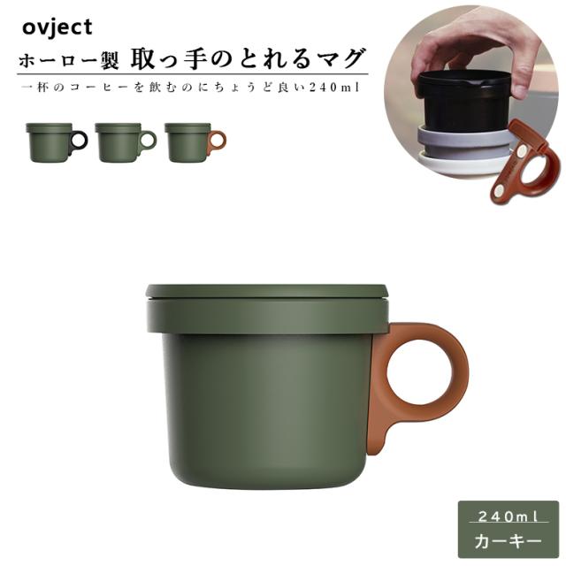 [三太郎の日P10倍!] こぼれにくい 蓋付き フタ付き マグカップ スープカップ スタッキング 直火OK 琺瑯 ホーロー 日本製 ovject オブジェクト O-EFMS-KH ほうろうフックマグ 240ml カーキー×取っ手は3色から選べます 阪和ホー
