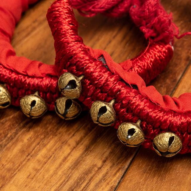 少し小さめのグングルです。カタックダンスの時に足につけて音響効果を出す為の足鈴です。こちらはデリーの専門店で作成しているカタックの踊り手さん用のグングルで、長時間踊っても足に傷がつかないよう、パッド付きになっていて、裏面はベルベットで覆われております。