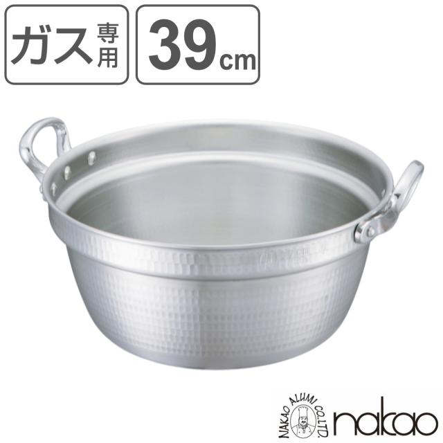 料理鍋 39cm 16L 厚板 極厚 厚板打出料理鍋 業務用 中尾アルミ ( ガス火専用 ガス火 両手鍋 打出し加工 打出し アルミ鍋 アルミ製 日本製 業務用鍋 39センチ 16リットル 煮込み料理 麺類 茹でる 蒸し料理 調理鍋 )