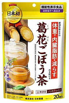 日本初!体重や内臓脂肪を減らすのを助けるティーバッグ形態のごぼう茶の機能性表示食品です。肥満気味な方の体重やお腹の脂肪を減らすのを助ける葛の花由来イソフラボン配合。手摘みされた葛の花を、国産の焙煎ごぼう茶とオリジナルブレンド。ほのかに香ばしく飲みやすい味わいで、食事はもちろん、シーンを選ばずいつでも楽しめます。ノンカフェインなので、カフェインに敏感な方にもオススメです。