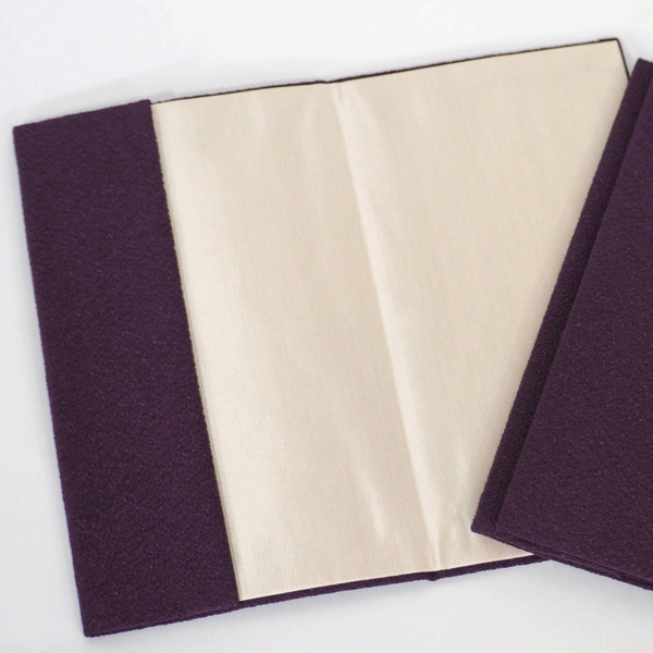 外は紫、内側は光沢のあるベージュのレーヨン生地を使用したシンプルなデザインです。老若男女問わずお使いいただけます。