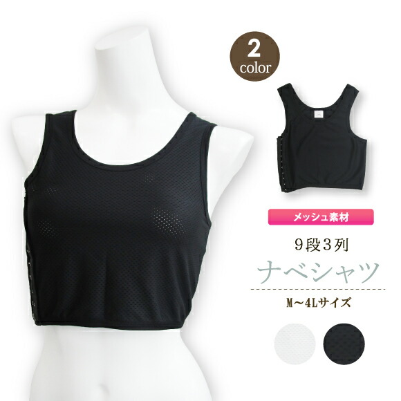 胸を小さく見せる M L LL 3L 4L 胸を小さく見せる ナベシャツ(B-04)【胸潰し 単品ブラ 9段3列 無地 コスプレ 大きいサイズ メッシュ素材 スマートブラ】