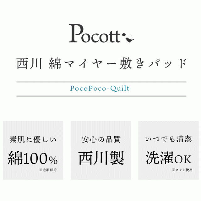 敷きパッド ダブル 綿100% ※2枚組※ ポコット Pocott 西川 パフタッチ 140×205cm 毛羽部分綿100% 綿マイヤー 敷き毛布