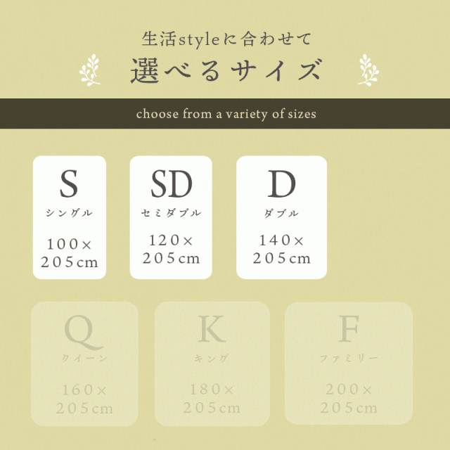 | サイズ | 約140×205cm ダブル・ダブルロング兼用 (キルティング許容範囲+5%-3%) |