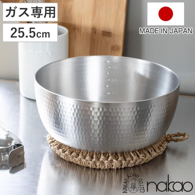 ヤットコ鍋 矢床鍋 25.5cm 4.8L 日本製 中尾アルミ ( 両手なべ 両手鍋 調理鍋 目盛付き 取っ手なし アルミ製 アルミ鍋 ガス火専用 ガス火 日本製 業務用 25.5センチ 4.8リットル アルミ製鍋 鍋 なべ 打ち出し鍋 やっとこ鍋 鋏 )