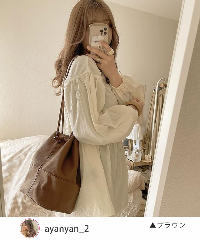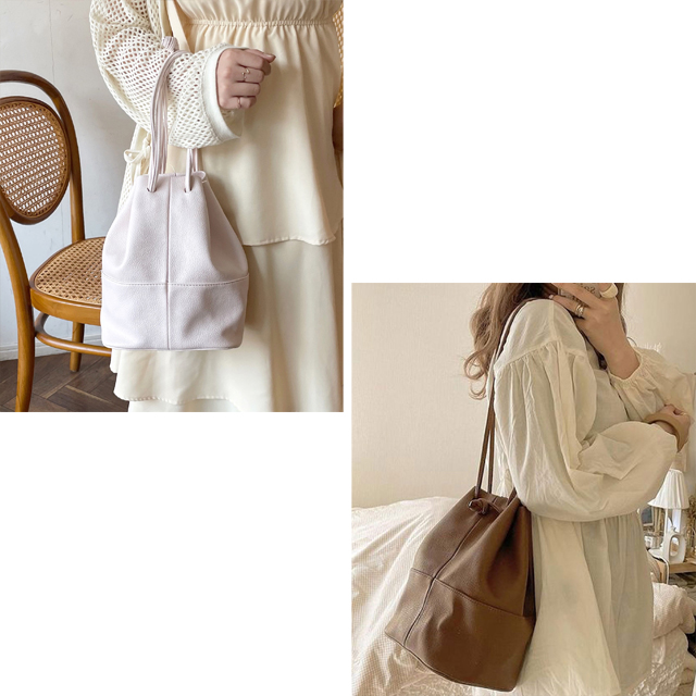 シンプルでどんなコーデにも合わせやすい巾着バッグ。