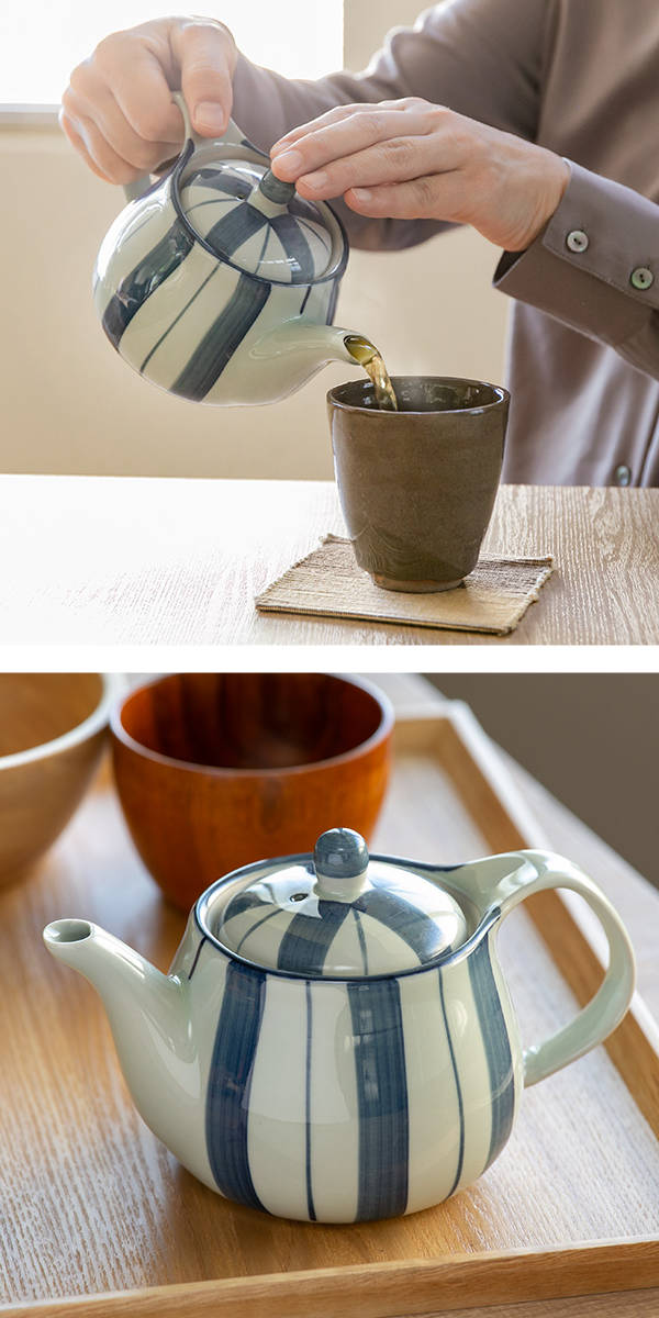 白と青のシンプルな色使いと、渋い十草模様がアクセントになっており、とても上品です。シリーズで揃えると統一感があり、ほっこり癒されるお茶の時間を過ごせます。