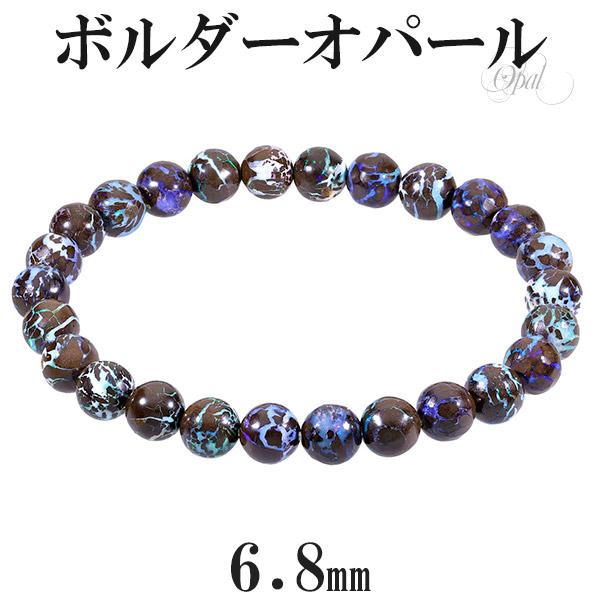 ボルダーオパール ブレスレット 高品質 6.8mm 17.5cm メンズM レディースL サイズ 10月 誕生石 天然石 オパール マトリックスオパール 数珠ブレスレット