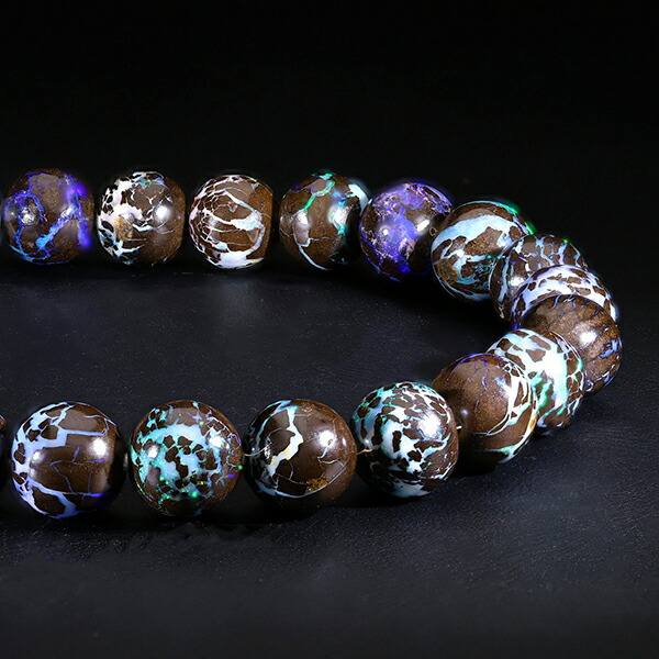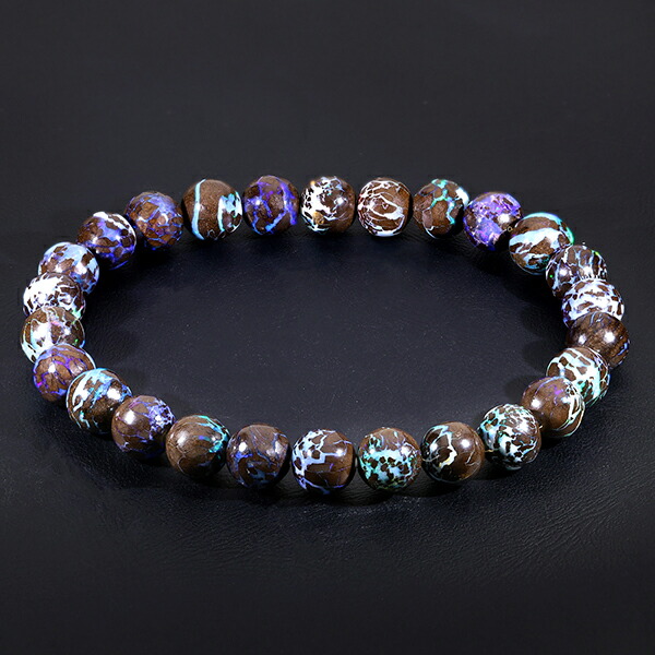 ボルダーオパール ブレスレット 高品質 6.8mm 17.5cm メンズM レディースL サイズ