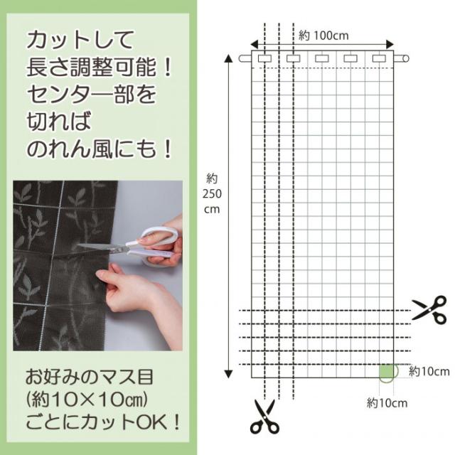 設置場所に合わせ10×10cmのマス目に沿って、お好みの幅や長さにカットできるアコーディオンカーテン。使用しない時は、片側へサッっと簡単に折りたためてスッキリ!お部屋の間仕切りに、急な来客にも最適です。シックなブラウンとほどよく透けるリーフ柄で、目隠しをしながらお部屋を素敵に演出します。 生産国:中国 素材・材質:ポリエステル100% 商品サイズ:約幅100×高さ250cm 重量:約390g 仕様:※つっぱり棒は付属しておりません。
