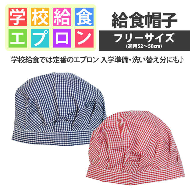 | 給食 帽子 ゴム付き 子供用 キッズ 男の子 女の子 ギンガムチェック柄 給食帽子 学校 給食 エプロン 子供エプロン キッズエプロン |