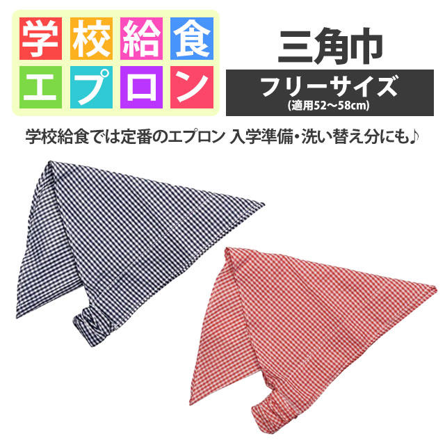 三角巾 ゴム付き 子供用 キッズ 男の子 女の子 ギンガム柄 三角布 学校 給食 エプロン 子供エプロン キッズエプロン