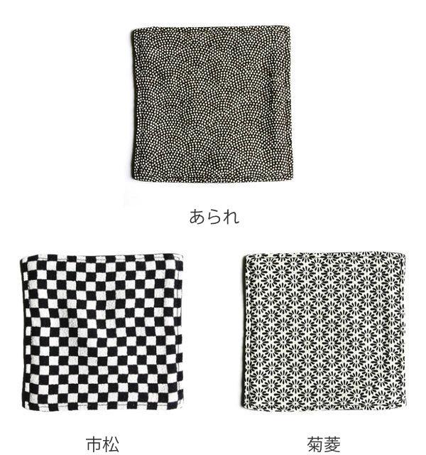 モノトーンで和モダンな雰囲気作りにぴったりです。裏面はシンプルな黒無地で、リバーシブルになっています。ポリエステル製なのでお手入れも簡単です。