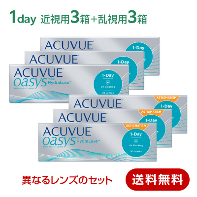 セット内容:ワンデーアキュビューオアシス(30枚入)×3箱とワンデーアキュビューオアシス乱視用(30枚入)×3箱