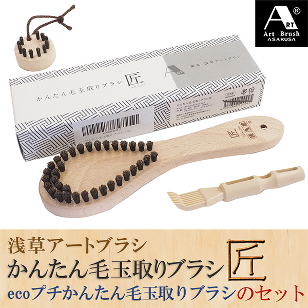 浅草アートブラシ かんたん毛玉取りブラシ 匠 + ecoプチ毛玉取りブラシ のセット‐エコプチ毛玉取りブラシ 毛玉取り 大小 セット 正規品 日本製